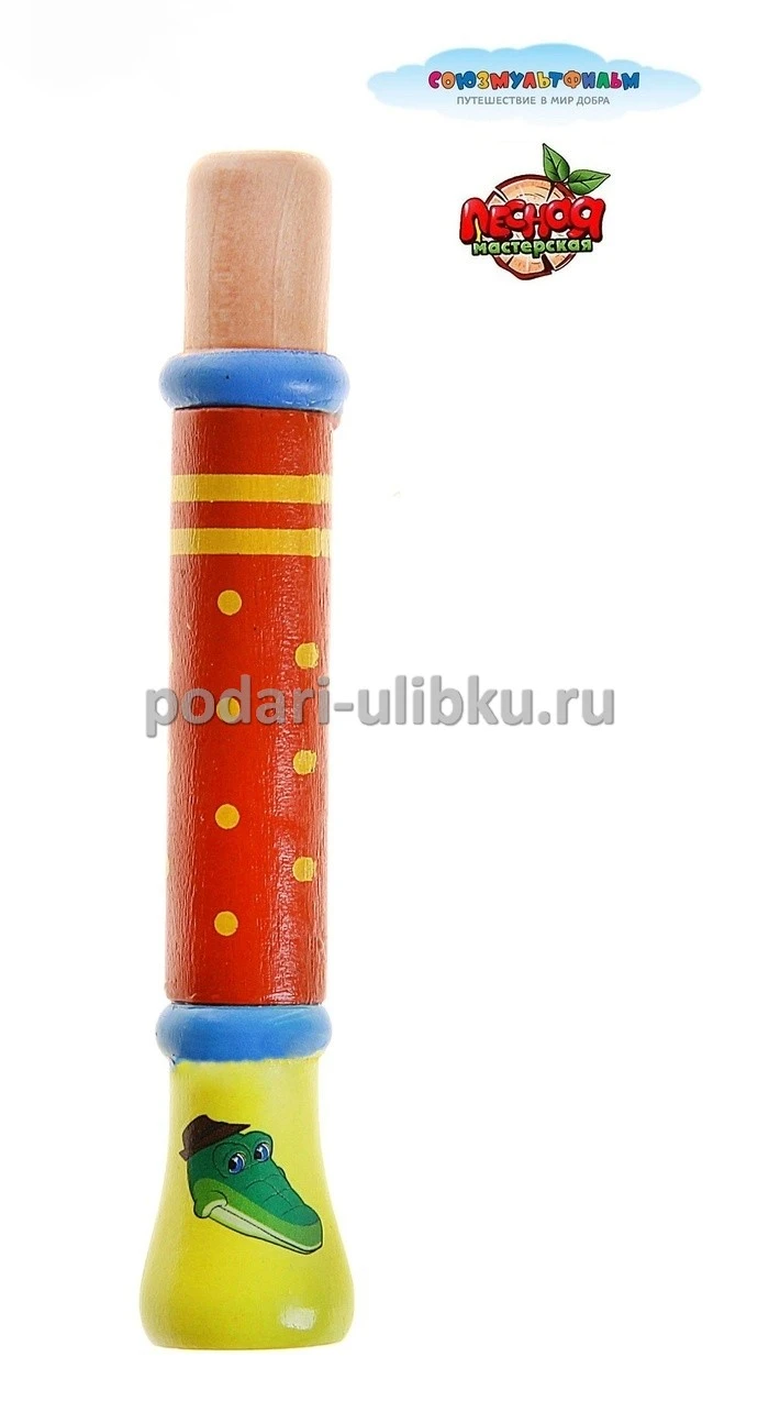 Деревянная дудочка, украшенная яркой росписью и изображением обожаемого персонажа Крокодила Гены из любимого мультфильма. У дудочки есть верёвочка, её можно повесить на шейку и носить с собой.