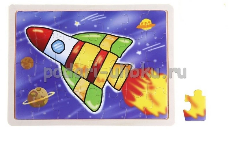 Пазл в деревянной рамке "Космическая ракета", 36 элементов - замечательная развивающая и познавательная игрушка для малыша!