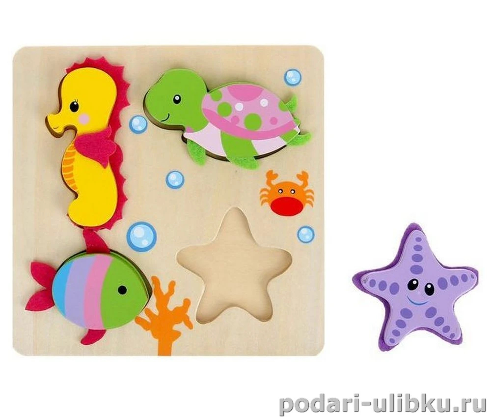 Рамка-вкладыш "Морские глубины" с фетровым декором - яркая развивающая игрушка для малыша с милыми морскими жителями: морским коньком, звёздочкой, черепашкой и рыбкой.