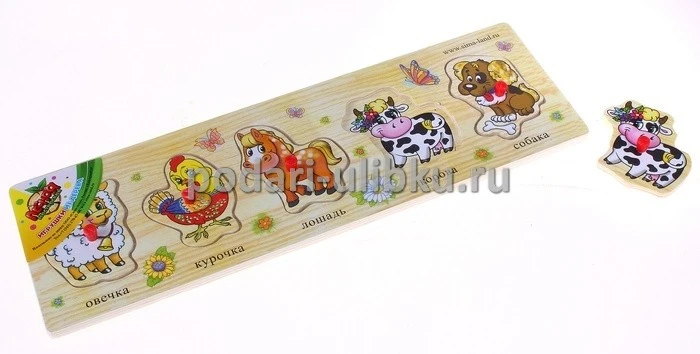 У съёмных картинок-деталек есть специальные пимпочки-держатели, чтобы маленьким пальчикам ребёнка было удобно их держать.