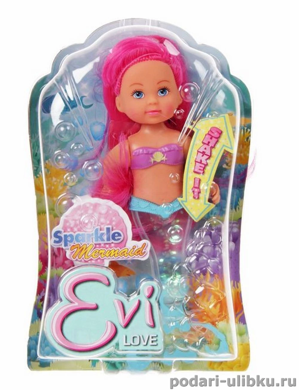 Миниатюрная волшебная кукла Еви-русалка очарует любую девочку с первого взгляда! У этой красавицы длинные мягкие розовые волосы. Волосы прошиты и поэтому их можно без опаски расчёсывать и создавать различные причёски для маленькой крошки-русалочки.