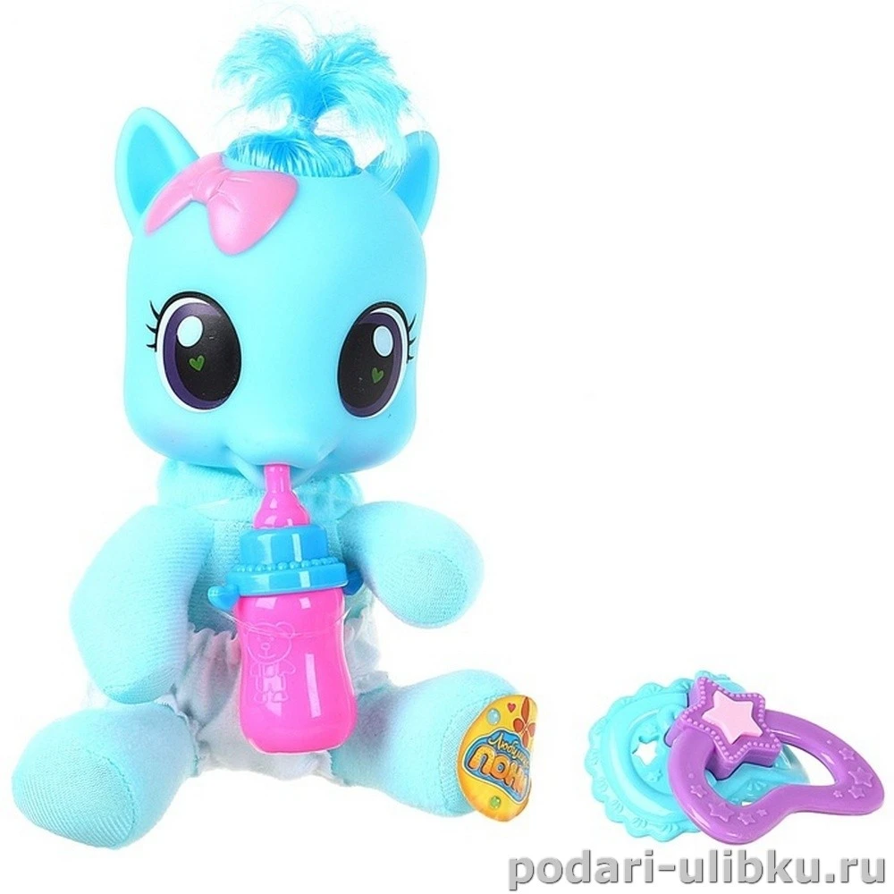 В комплекте: трогательный, голубой пони, пустышка и бутылочка.