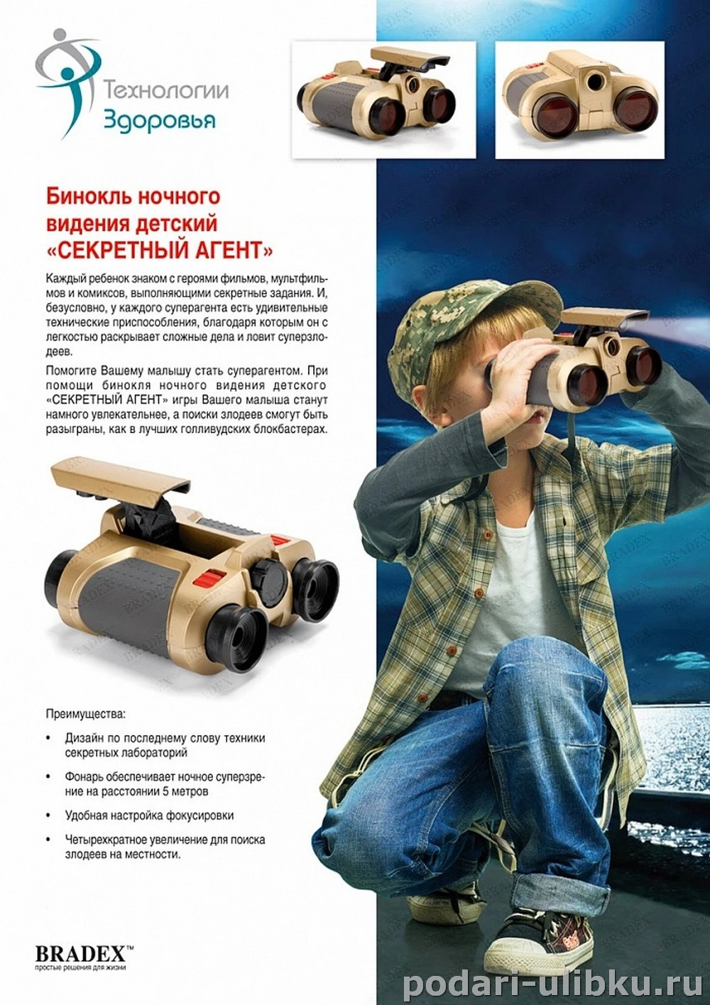 Помогите Вашему малышу стать суперагентом. При помощи бинокля ночного видения детского «СЕКРЕТНЫЙ АГЕНТ» игры Вашего малыша станут намного увлекательнее, а поиски злодеев смогут быть разыграны, как в лучших голливудских блокбастерах.