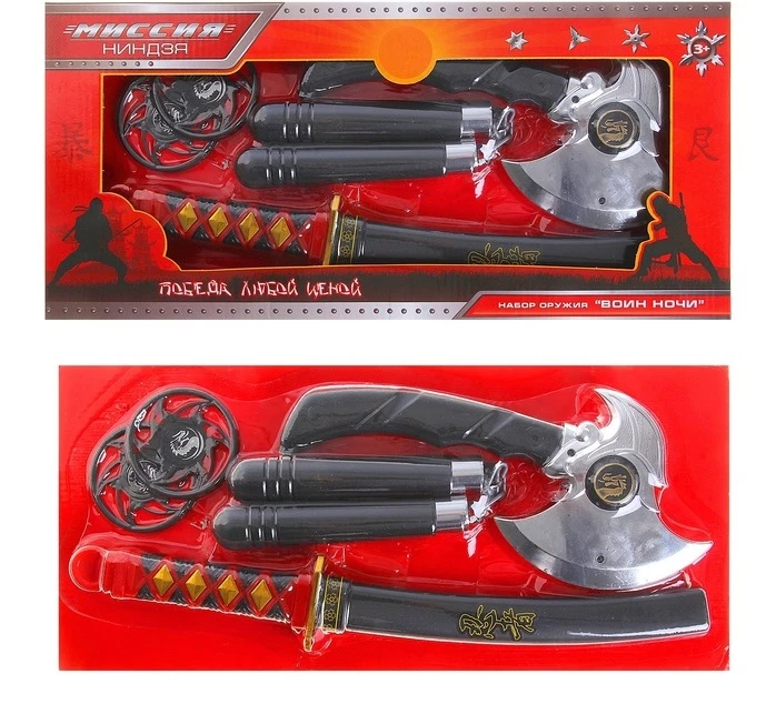 Набор оружия "Ниндзя - Воин ночи" из 5 предметов - отличный подарок, который позволит мальчишке придумывать и разыгрывать разные героические сценарии битв, побед, подвигов! Мальчишка весело и с пользой будет проводить время в игре.