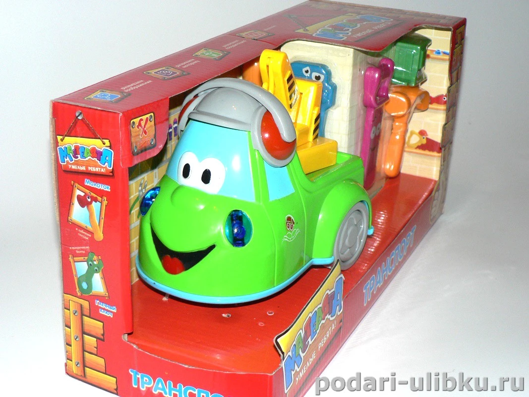 В комплекте с машинкой набор инструментов, чтобы малыш мог починить любую поломку у машинки и в доме.