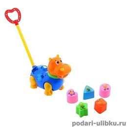 Каталка-сортер "Бегемотик" на палочке. МИКС