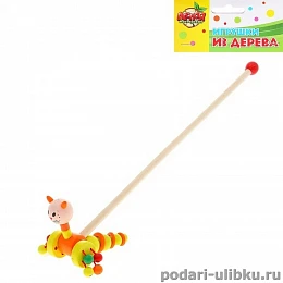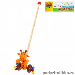 Деревянная каталка "Животное" на палочке с хвостиком и бусинками
