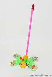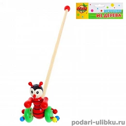 Деревянная каталка на палочке "Пчёлка" с бубенцами