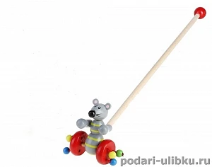 Деревянная каталка Мышка на палочке, колеса с бусинками