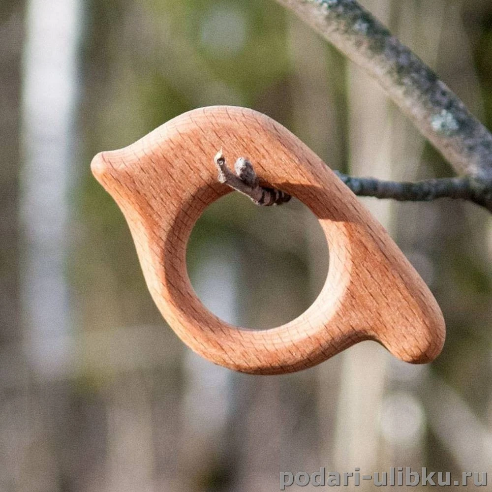 Деревянный грызунок Птичка, ТМ "Леснушки" - великолепный подарок для новорожденного, это будет его первая живая тактильная игрушка!