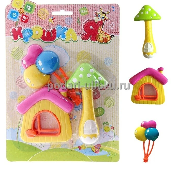 Набор погремушек "Домики" отличный выбор для начала знакомства малыша с окружающим его миром. Яркие цвета, интересные формы и качественный материал - несомненные плюсы этого набора. Интересные домики и яркая связка шариков обязательно понравятся малышу, привлекут его внимание и будут способствовать его развитию. Погремушки будут способствовать развитию мелкой моторики рук, воображения, слуховому, визуальному и тактильному восприятию.
