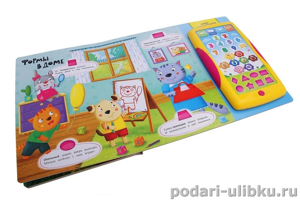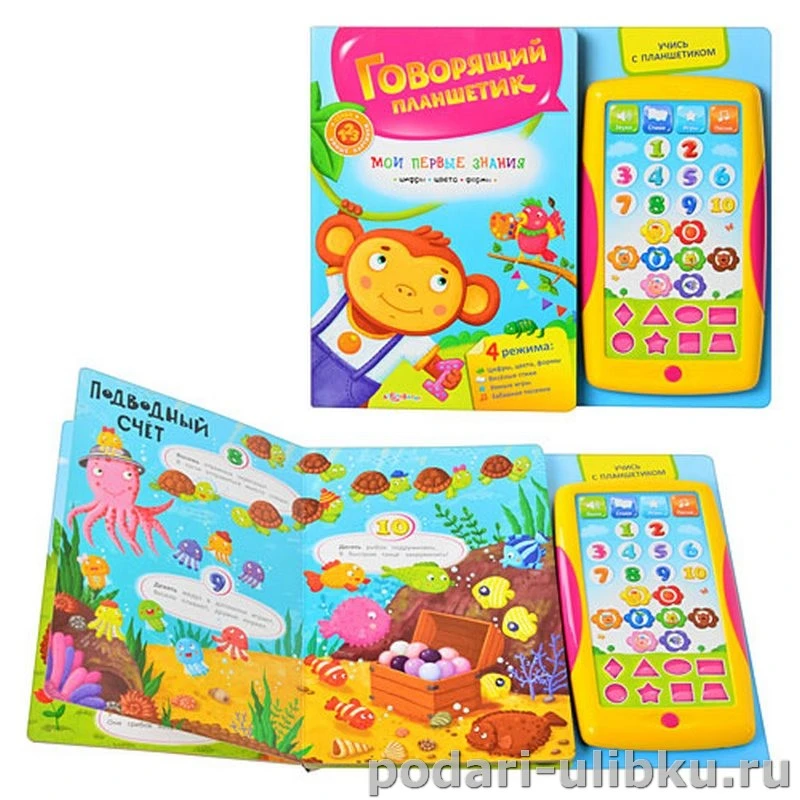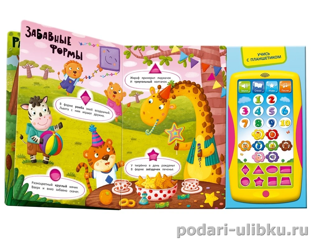 Говорящий планшетик-игрушка легко снимается с книжки и его можно взять с собой, чтобы не скучать в дороге.
