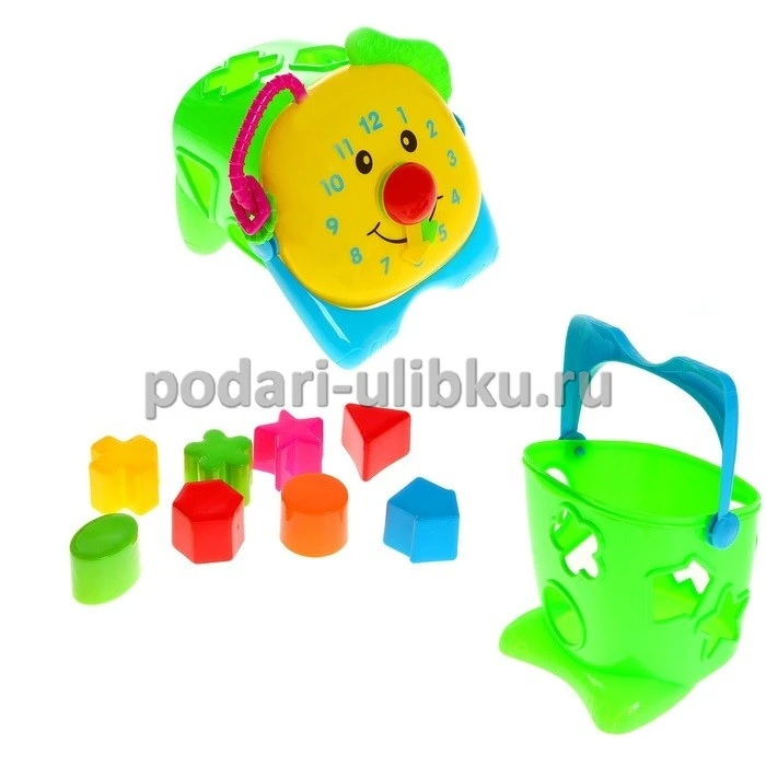 Логическая игрушка 2 в 1 ведёрко-сортёр "Часики" - это забавная игрушка для малыша. Сортёр сделан в виде забавной зверушки - ведерка с ручкой, чтобы было удобно его переносить. На мордочке у зверёныша красный носик и циферблат, а на стенках ведёрка расположены отверстия различной формы, чтобы использовать ведёрко как сортёр. В комплекте к ведёрку набор вкладышей-формочек соответствующие отверстиям (овал, цветочек, домин, крестик, звездочка и др). Для начала игры вкладыши следует достать из животика мишки. Теперь задача ребенка поместить формочки внутрь ведёрка, закрытого крышкой - мордочкой, но сделать это можно только через соответствующее отверстие. Сбоку есть тактильная погремушка с колечками. Игрушка выполнена в ярких цветах, что обязательно будет радовать вашего малыша.