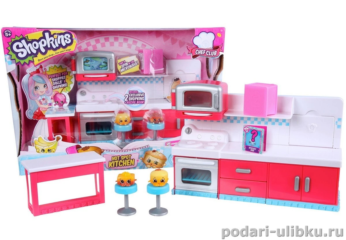 - 2 эксклюзивных шопкинса: Chocolate Cake Jake и Valentina Vanilla Cake! (это те составляющие, которые пригодятся мастерице для сотворения таинственного десерта из книги рецептов.кухня многофункциональная)