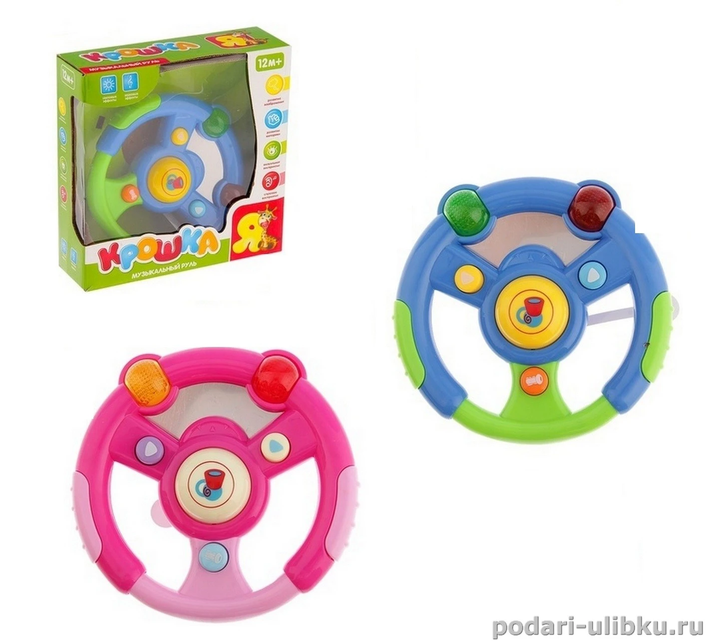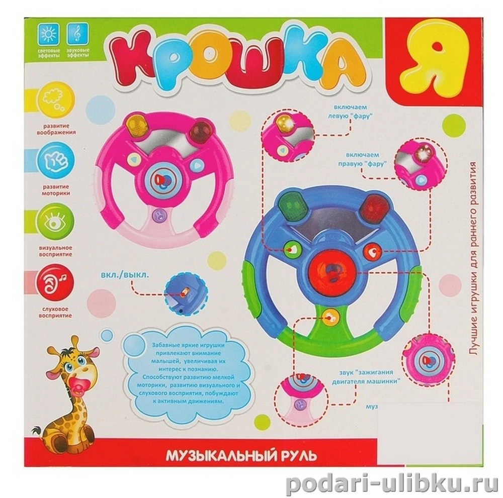 Музыкальный руль "Крошка Я" со световыми эффектами станет отличным подарком для ребёнка, займёт его внимание и поможет развиваться в игре!
