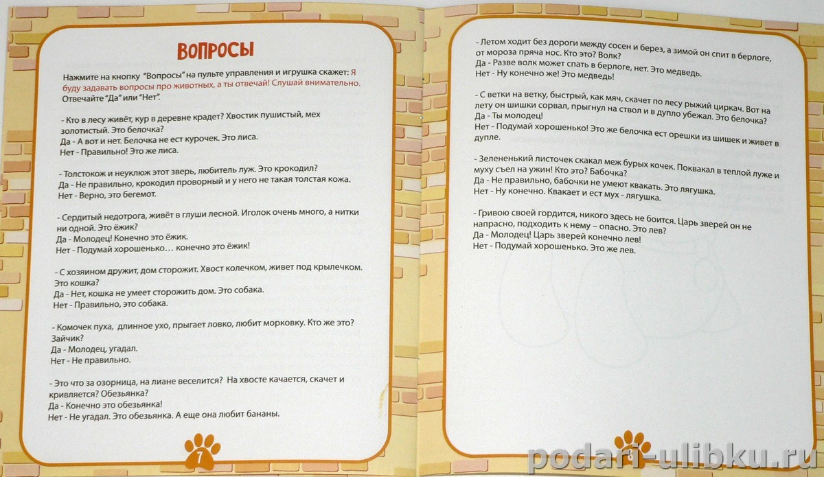 Нажав на кнопку "Вопрос" зверёныш будет задавать малышу вопросы и ожидать ответа.