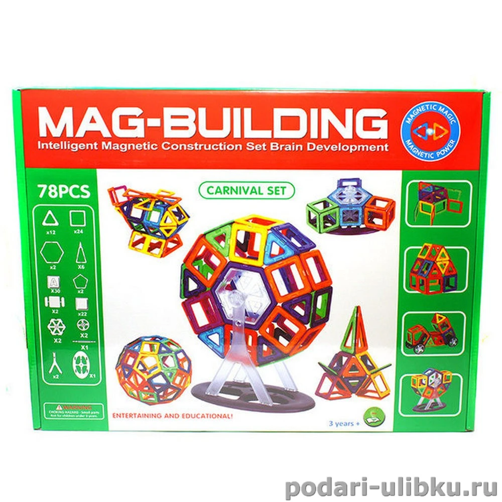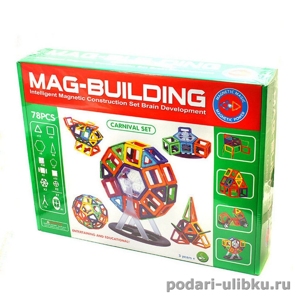Магнитный конструктор Mag-Building 78 состоит из 78-ми элементов - отлично подойдет ребенку в качестве базового набора, так как в него помимо деталей вошли колесные базы и базы каруселей. Это позволяет собирать из конструктора не только геометрические фигуры, башни, но и автомобили. Машинки получаются оригинальными, фантастическими, с надежной конструкцией. Ими можно играть, а можно создавать все новые и новые невероятные модели.