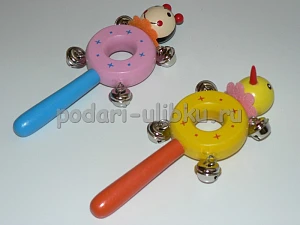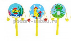 Игрушка музыкальная Колотушка круглая с бусинками. МИКС