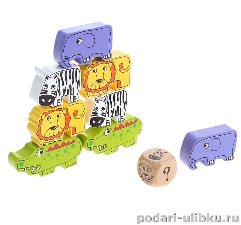 Игра развивающая "Собери пирамидку. Африка", 9 элементов — это увлекательная игра способная на долго захватить внимание малыша, а в компании время за игрой пролетит быстро и весело. В этой игре можно самим придумывать правила. Участники кидают кубик и строят башню из зверушек в том порядке, который выпадает на игральной кости. «Вопрос» даёт право игрокам выбирать животное, которое они установят. Побеждает тот, кто последним поставит зверушку на башню. Главное, чтобы она устояла!