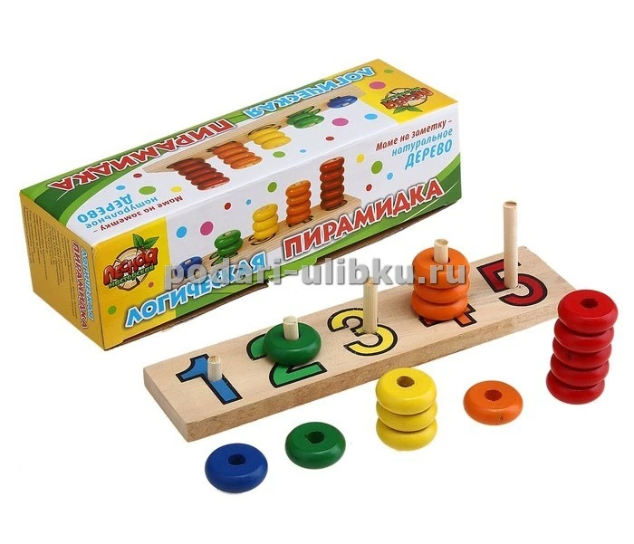 Задача малыша — правильно посчитать цветные фигурки и надеть их на подходящие столбики. Позвольте вашему ребёнку освоить азы счёта в занимательной форме! Кроме того, пирамидка развивает пространственное мышление, логику и мелкую моторику рук.