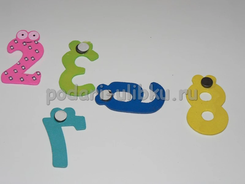 Деревянные цифры - магниты "Глазастики".15 эл-тов