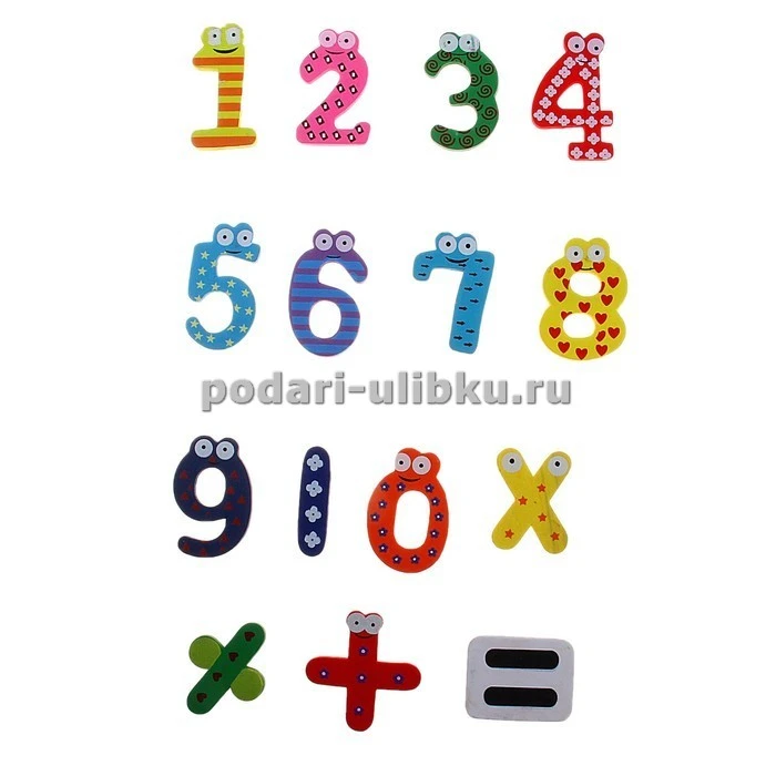 Деревянные цифры - магниты "Глазастики".15 эл-тов для игры и обучения малышей числам и счёту.