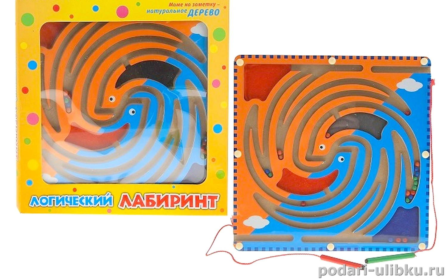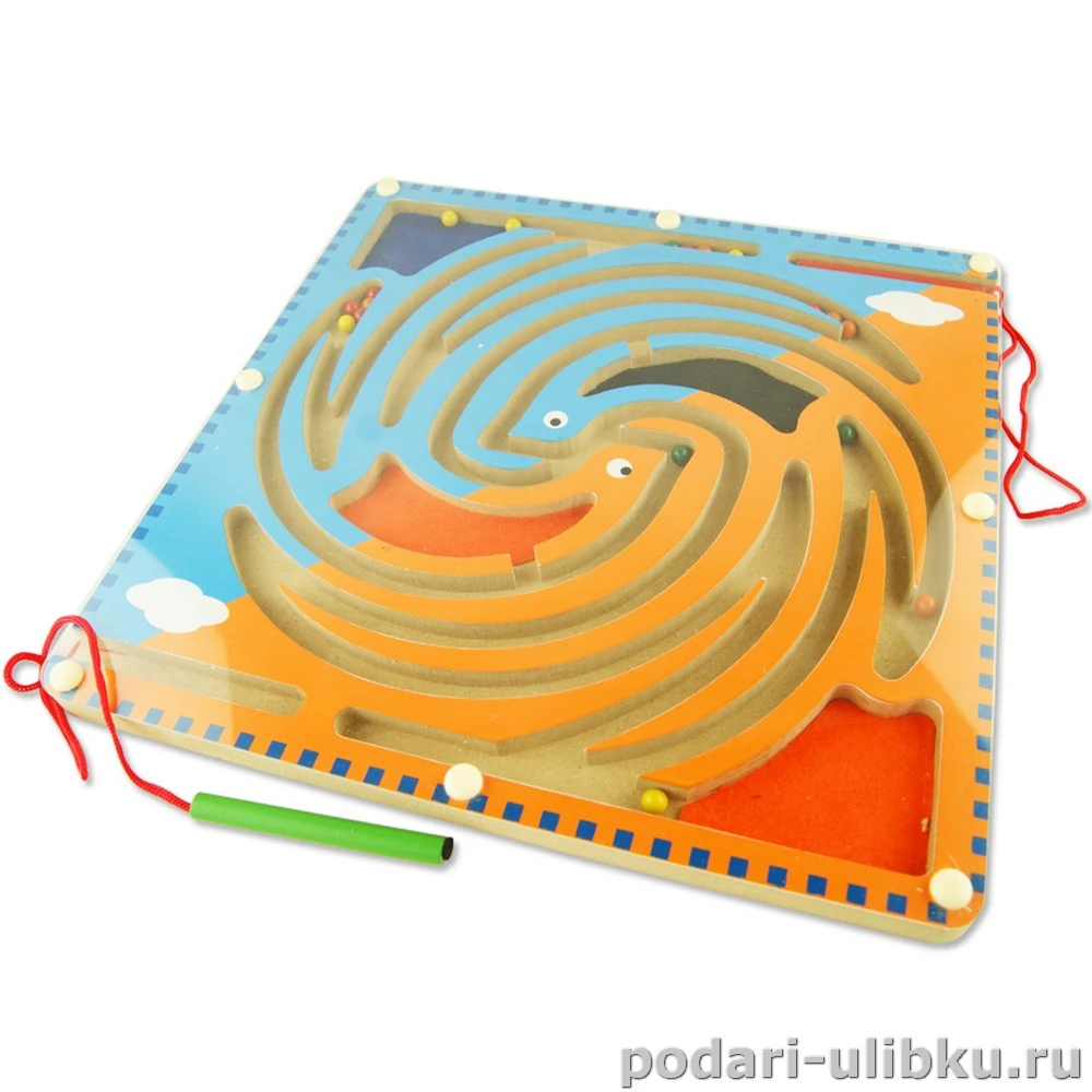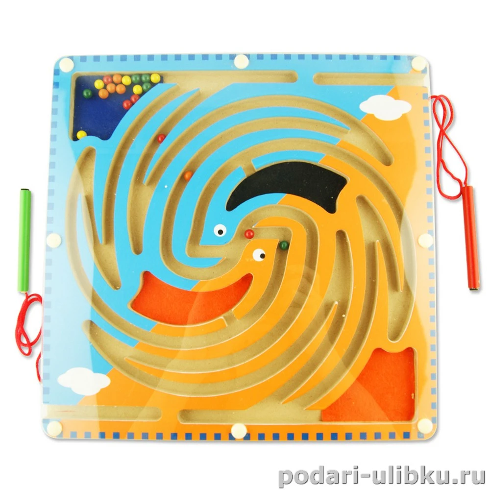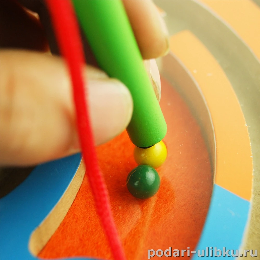 Палочкой с магнитным наконечником можно перемещать шарики по лабиринту. Можно перемещать по одному, или сразу несколько, по цветам, в разные концы лабиринта.