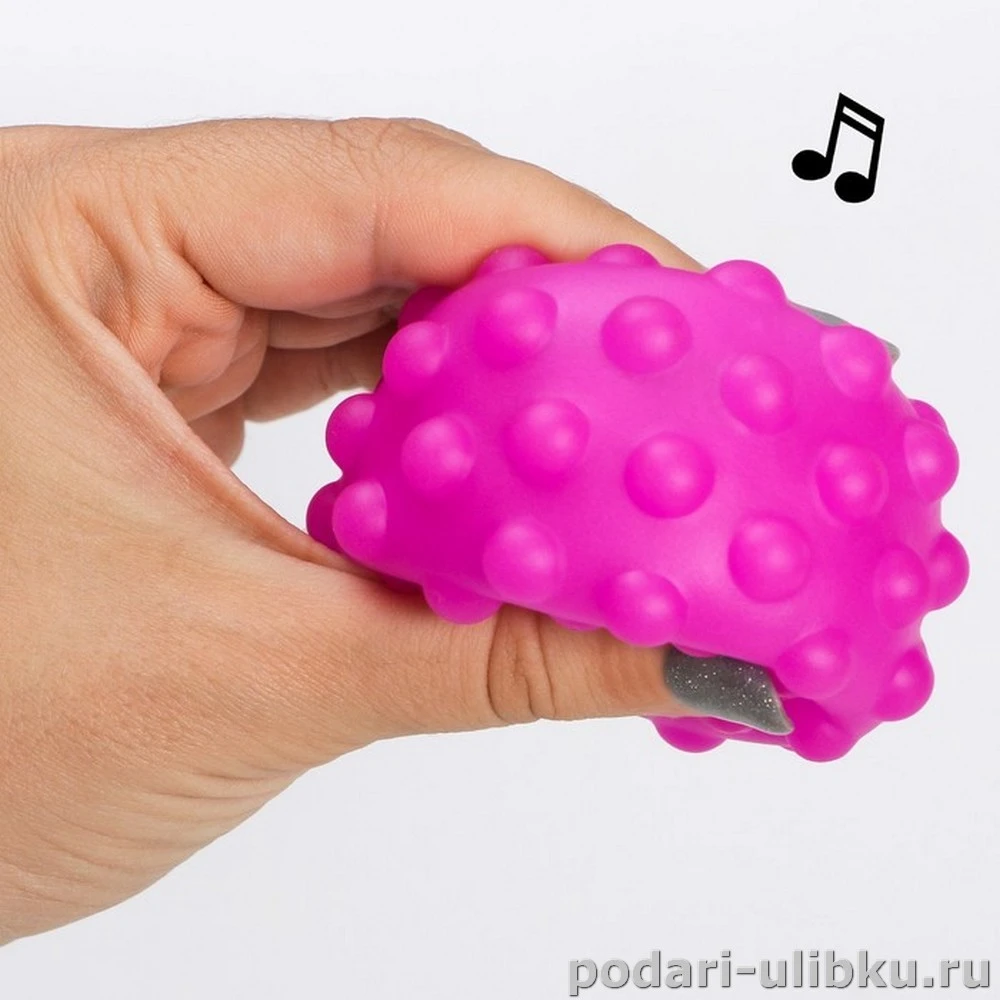 Мячики достаточно мягкие, чтобы ребёнок сам мог сжать их и пищать ими.