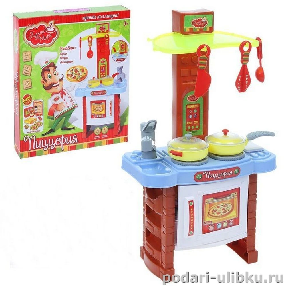Набор игровой "Пиццерия" Кухни Мира со световыми и звуковыми эффектами — мечта юной хозяйки или хозяина! Ребёнок сможет попробовать себя в роли настоящего повара. Красочная кухня с первых секунд привлечёт внимание ребёнка. Он научится экспериментировать и узнает, как готовится настоящая итальянская пицца и подскажет маме (для этого на упаковке есть подробный рецепт).
