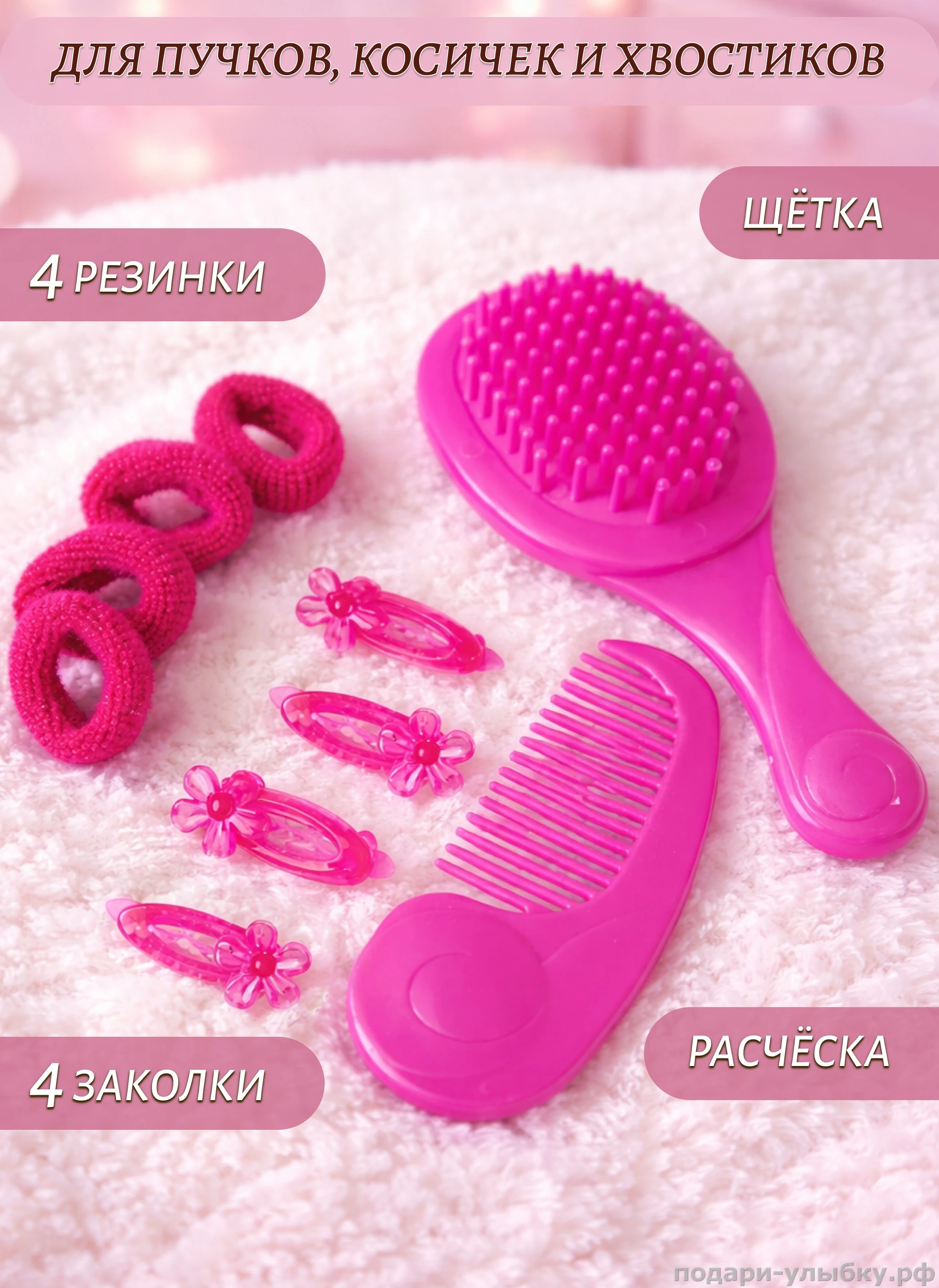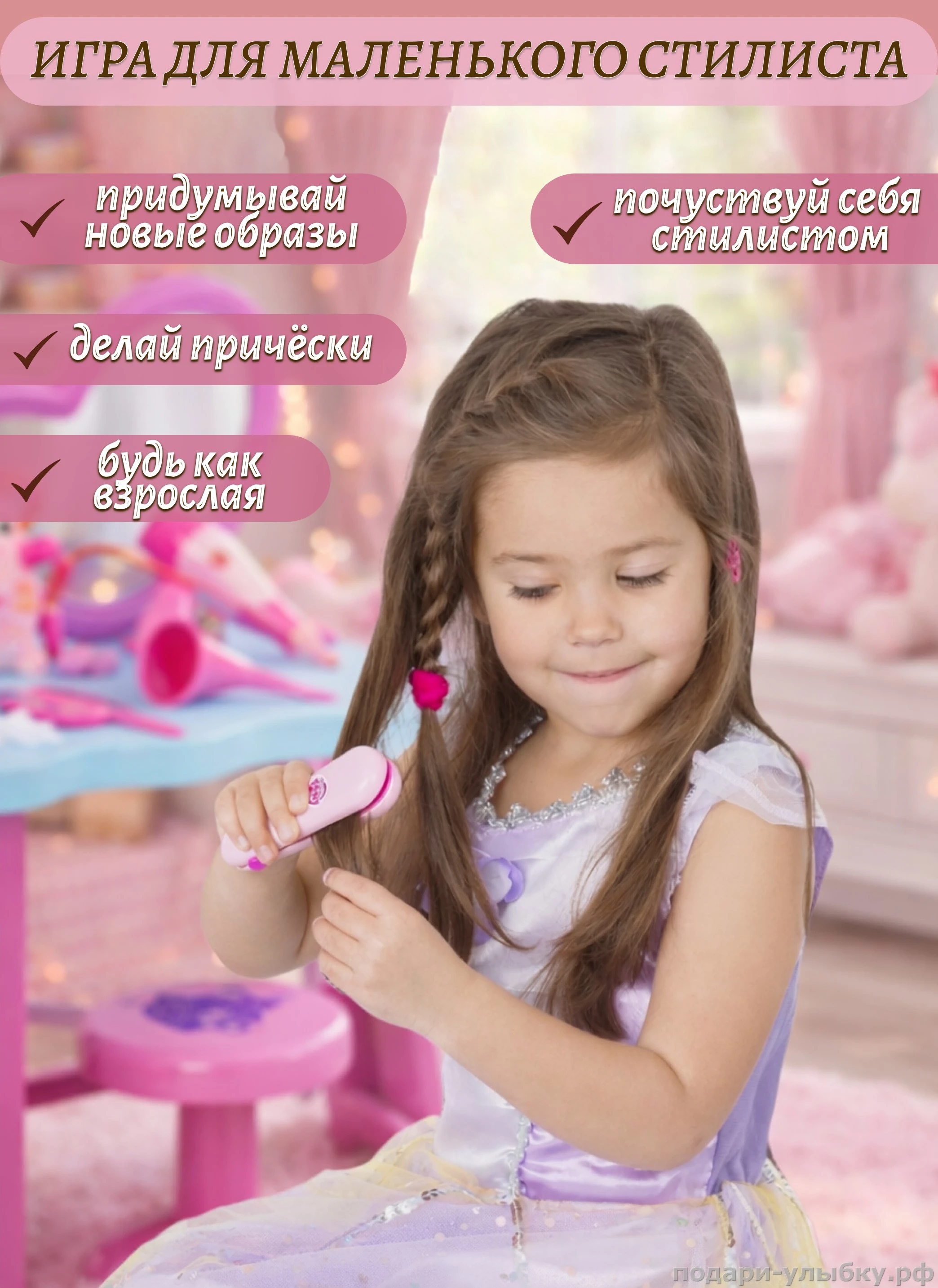 Набор содержит в себе множество замечательных аксессуаров, которые позволят маленькой моднице почувствовать себя красавицей. С таким набором она будет целыми днями увлечена созданием своего неповторимого стиля. Юные модницы, смогут научиться делать удивительные прически и заплетать косички, а также развить чувство вкуса и стиля.