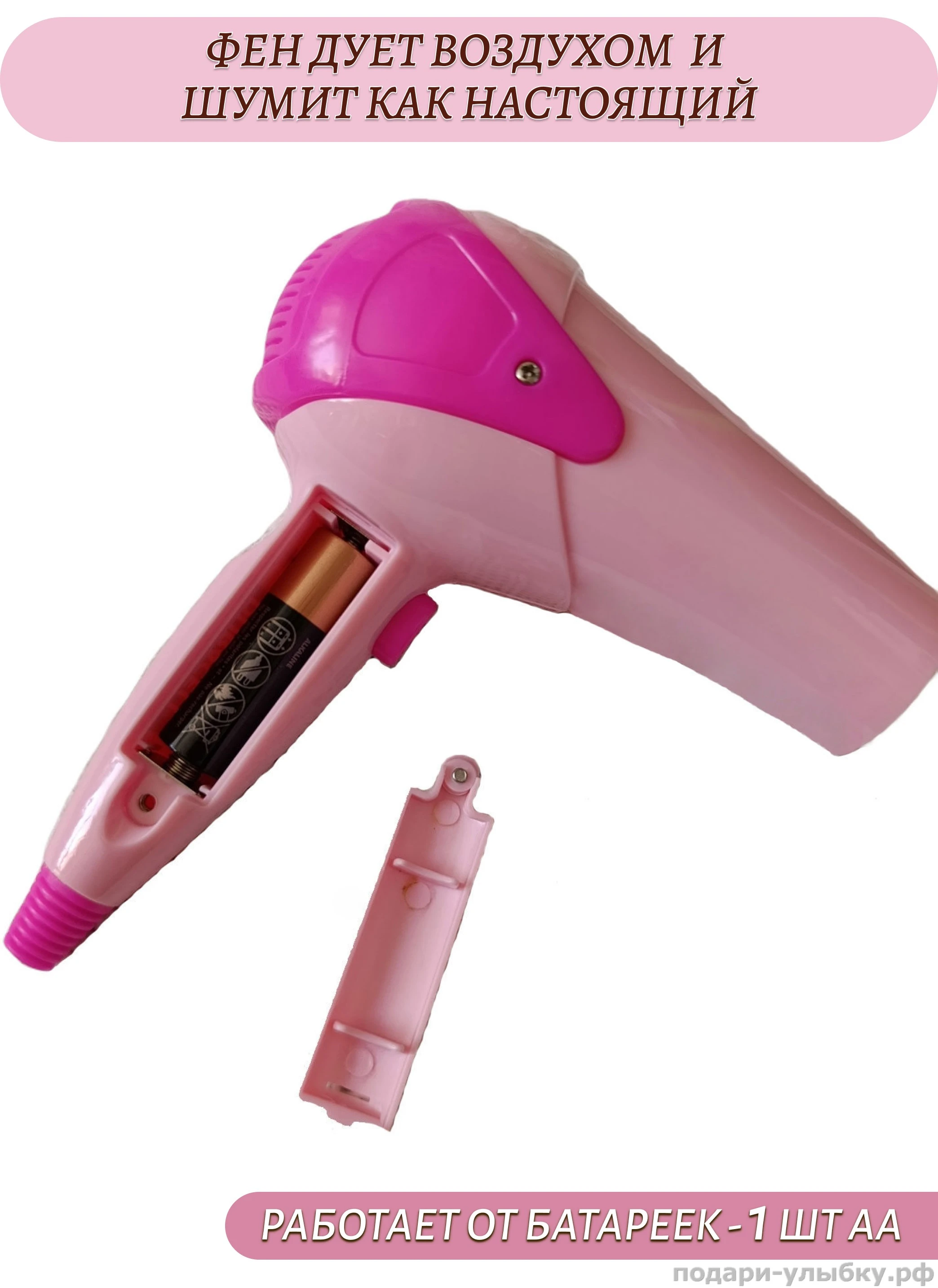 Фен работает от батареек: 1х1,5 VAA/LR6 (В комплект не входит).