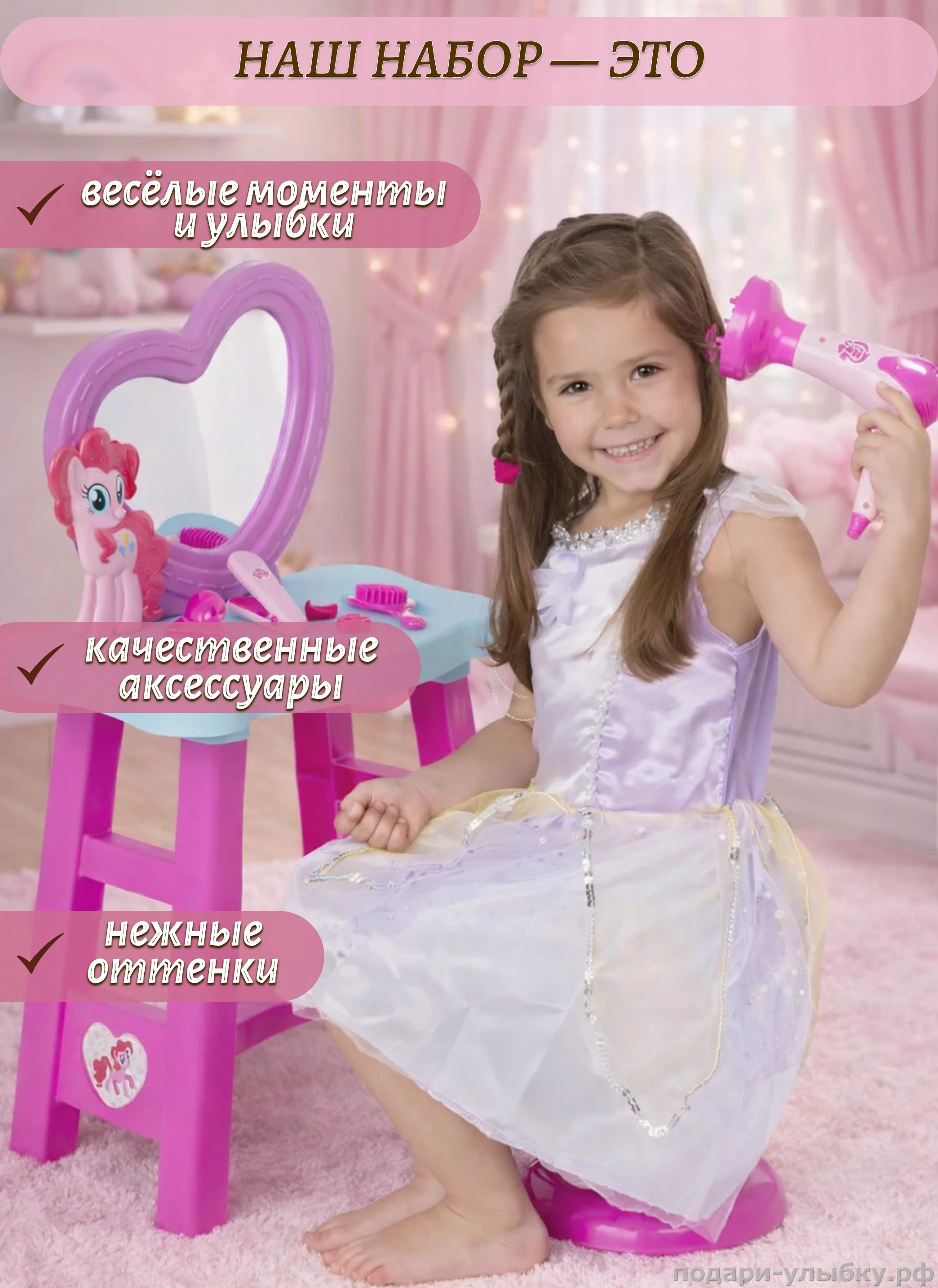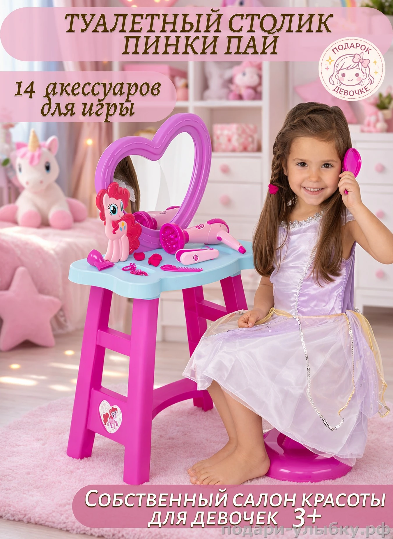 С игровым Набором My Little Pony Туалетный столик малышка в детский сад, в гости или на прогулку будет отправляться как на праздник! Ведь у Пинки каждый день - праздник!