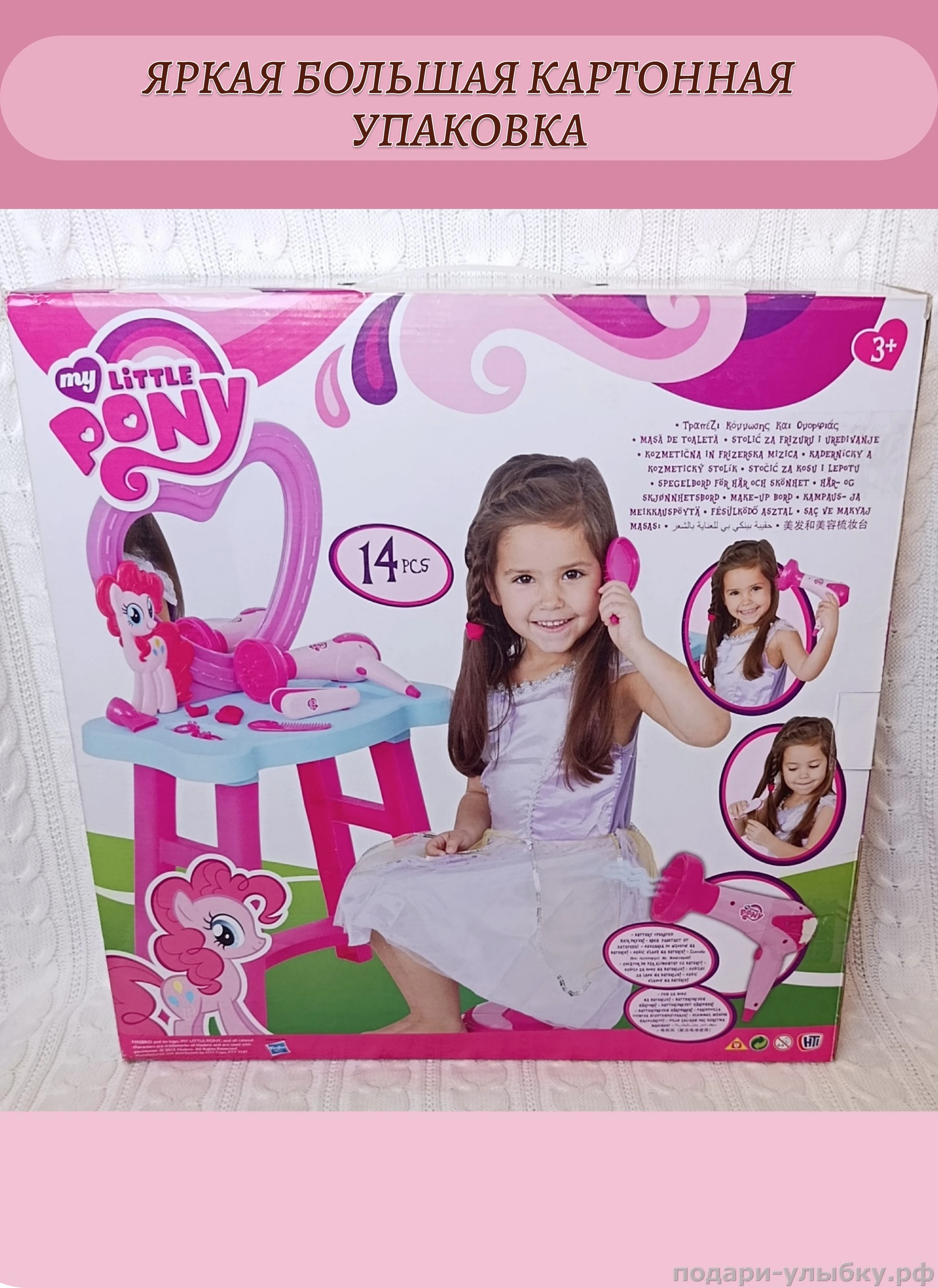 Игровой набор My Little Pony (Май Литл Пони) Туалетный столик понравится каждой поклоннице всемирно популярного мультсериала My little Pony и его неповторимых персонажей.