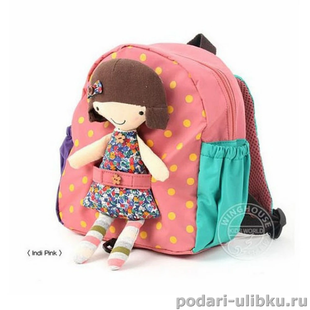 Рюкзачок с оригинальной куколкой несомненно понравится девочкам, тем более, что куколку можно отстегнуть и просто играть с ней. Куколка фиксируется к рюкзачку пуговкой и пояском на талии. А наличие съёмного поводка порадует родителей.