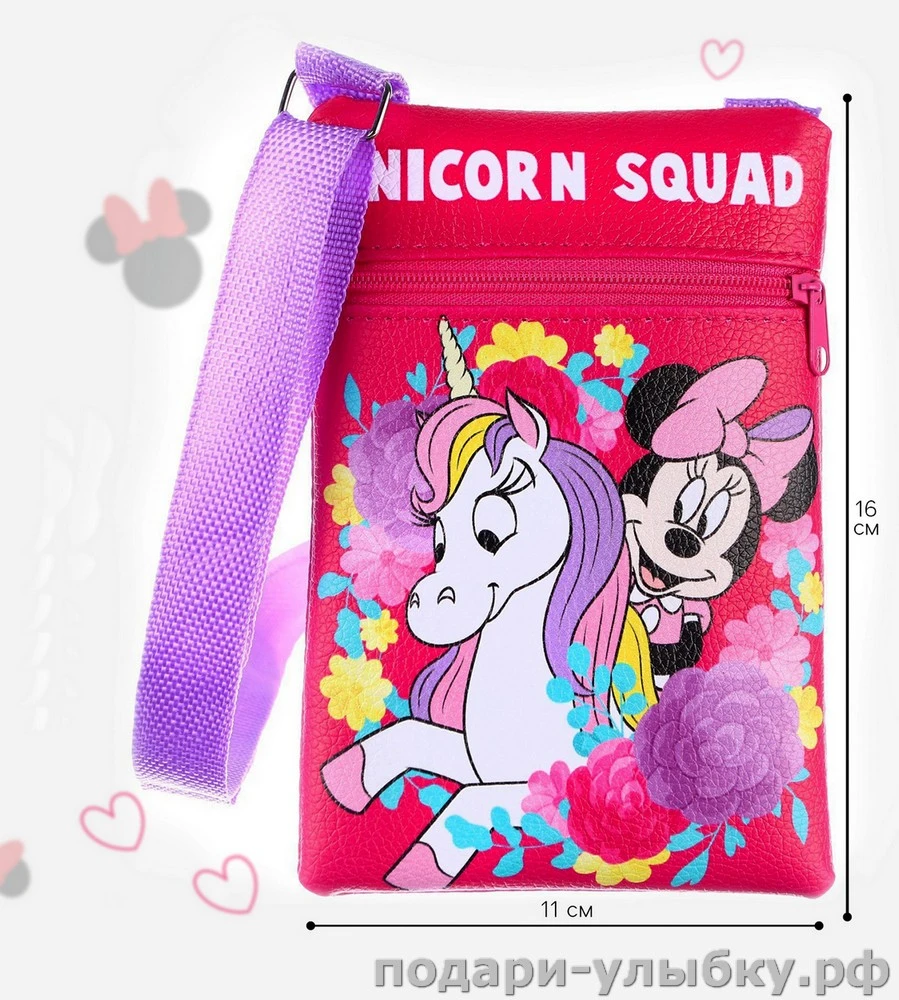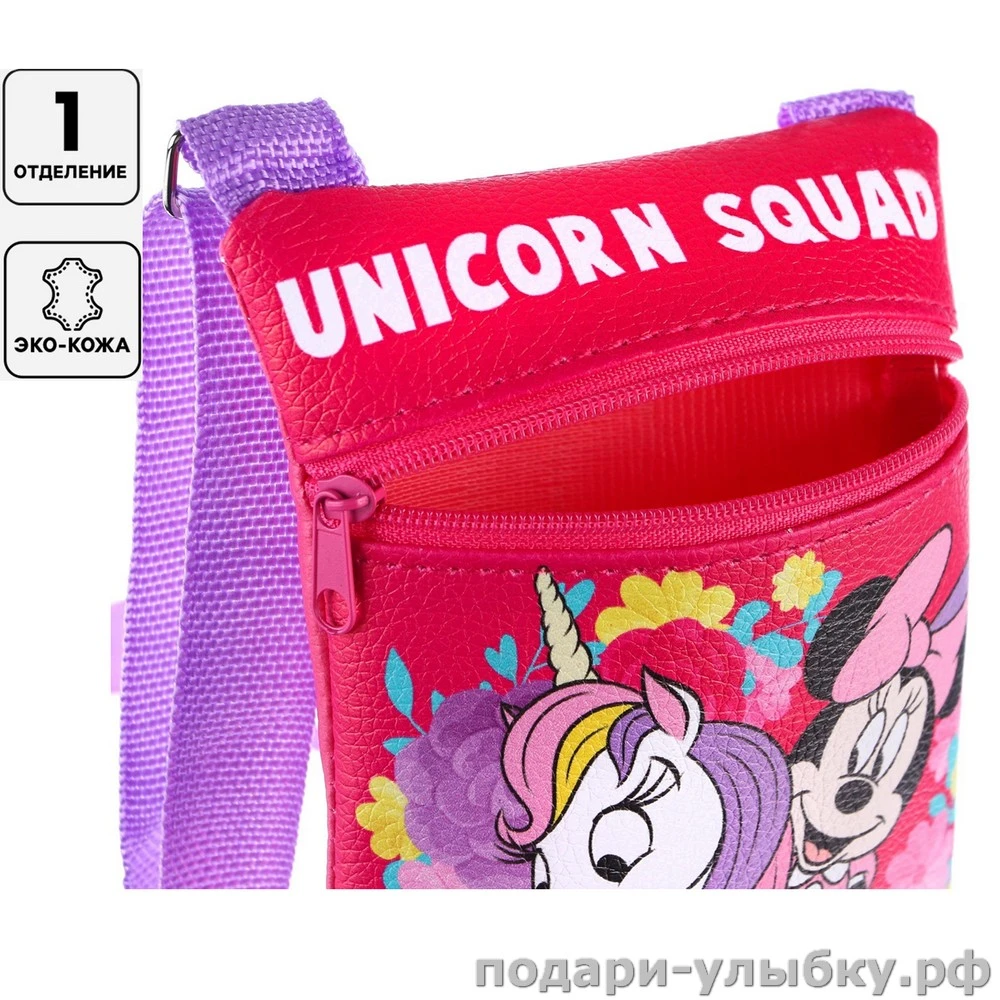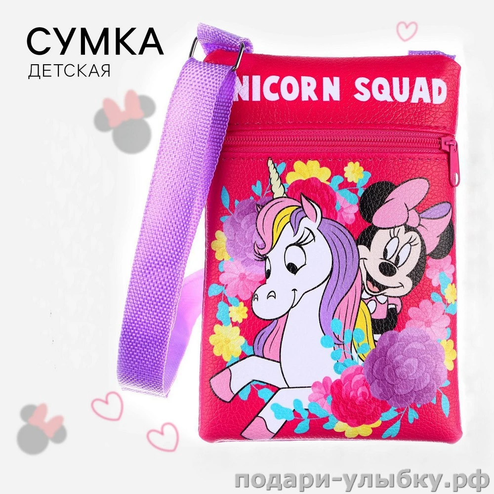 Купить Сумка детская для девочки через плечо, на шею Единорог и Минни Маус по привлекательной цене Вы можете в интернет-магазине Подари Улыбку с доставкой в любой регион России и возможностью курьерской доставки по г.Москва и г.Сергиев Посад.