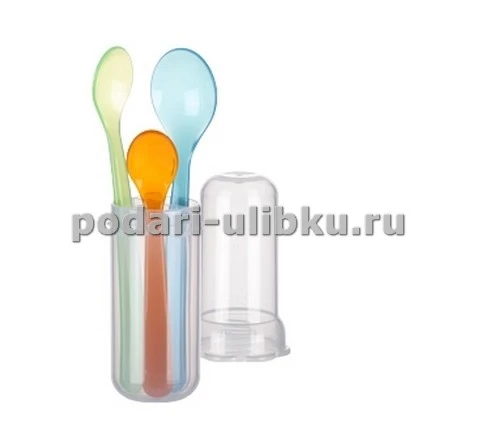 Три детские ложечки. Длинная, средняя и короткая в удобном футляре для гигиенического хранения во время путешествий и прогулок с детьми.,