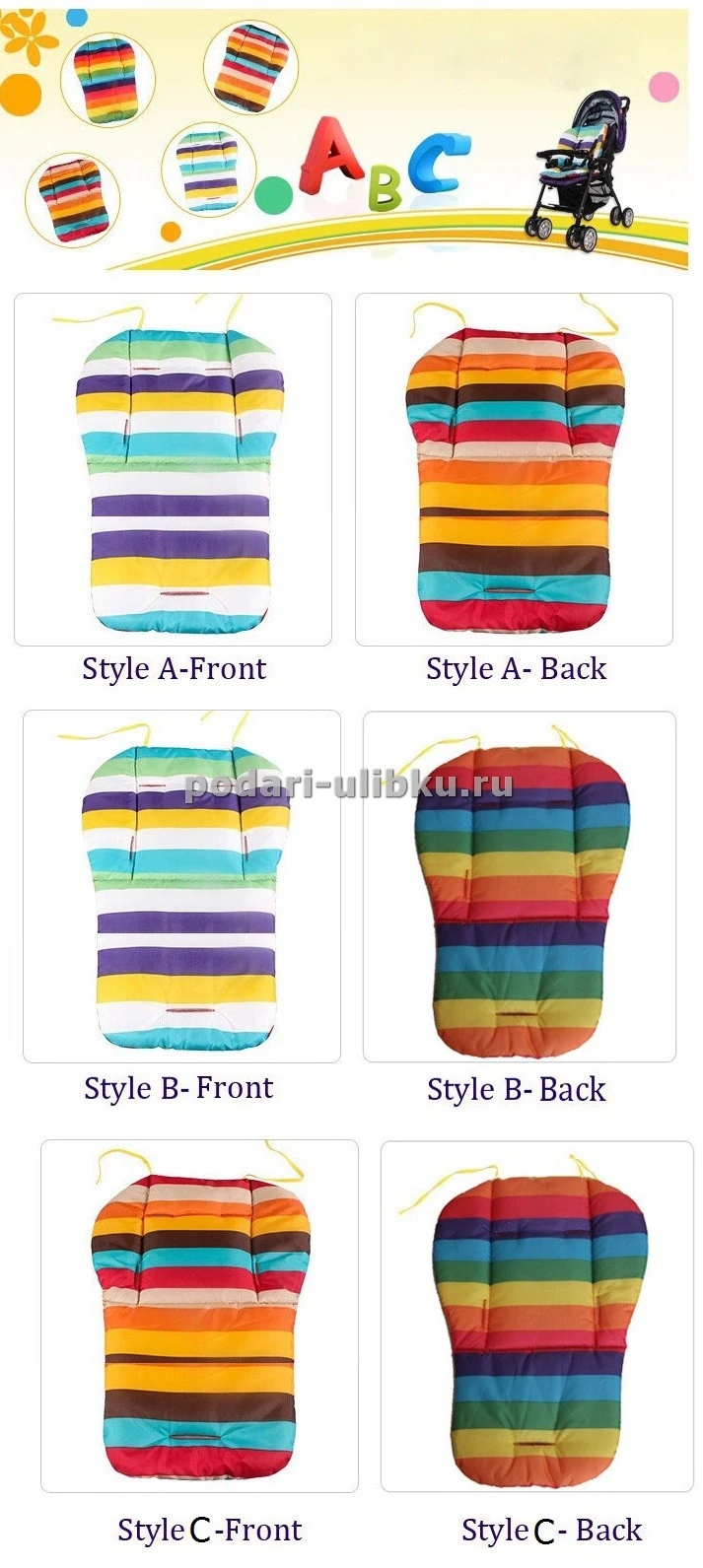 Матрасик для прогулочной коляски, автокресла, стульчика, МИКС