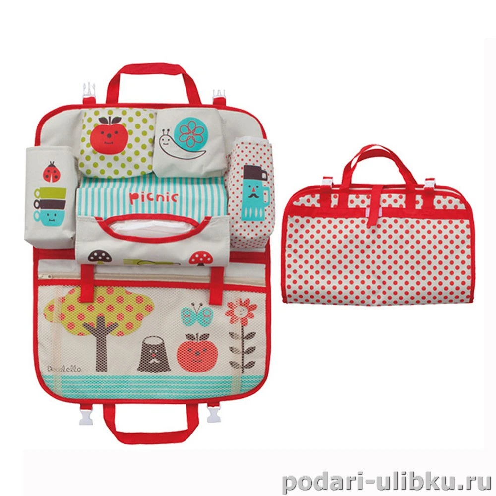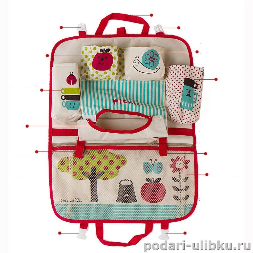 Органайзер для автомобильных сидений "Picnic" позволит вместить все нужные вашему малышу вещи в длительном путешествии или короткой поездке. Теперь любимая игрушка и книжка будут под рукой и за салфетками не придётся далеко тянуться. В органайзере предусмотрены различные отсеки для хранения напитков, закусок, салфеток, подгузников и других полезных мелочей. А наличие термокарманов сохранит питью малыша комфортную температуру.