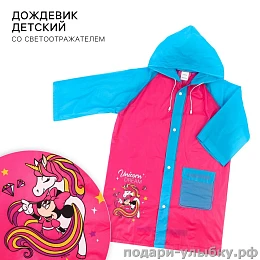 Дождевик детский розовый с Минни Маус и Единорогом