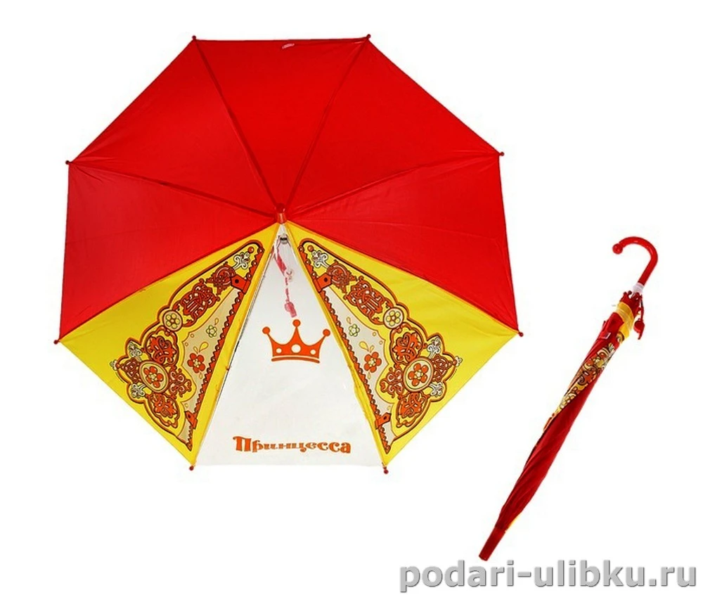 Каждая девочка мечтает стать настоящей принцессой под стать тем героиням, истории о которых она узнает из пестрых книжек и любимых мультфильмов. И как и в любом образе, ее сказочное происхождение, в первую очередь, подчеркивают аксессуары. Детский зонт яркого красного цвета с принтом станет настоящим королевским подарком для маленькой фантазерки.