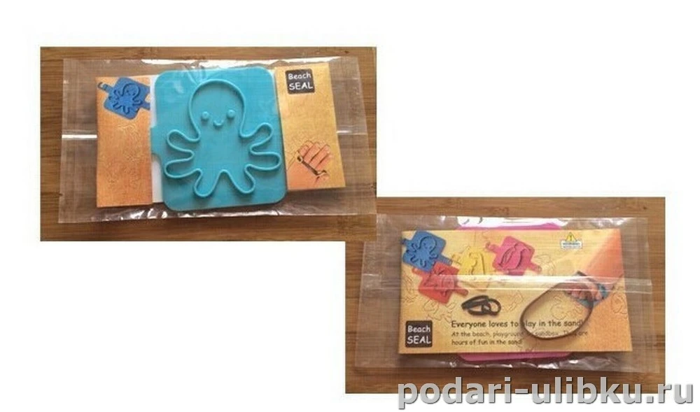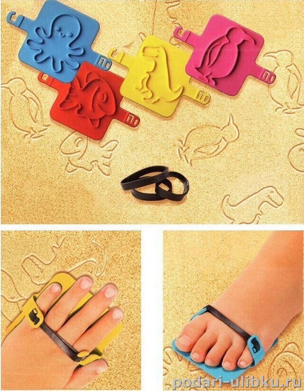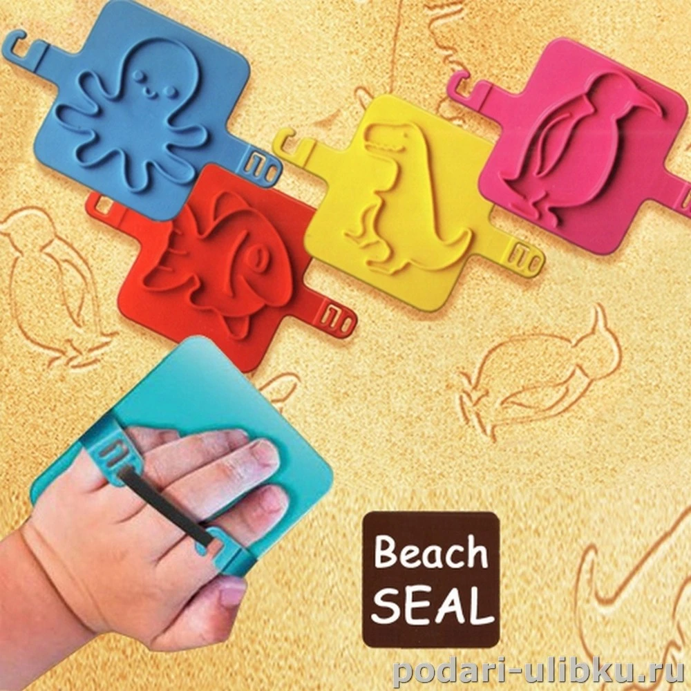 Штамп для песка - оригинальная игрушка и забавное развлечение для песочницы и пляжа. При надавливании на пластину на песке остаётся чёткий отпечаток в виде животных: улыбчивый осьминог, забавная рыбка, пингвин или милый динозаврик.