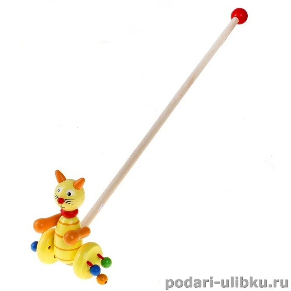 Деревянная каталка "Кошка" на палочке - это привлекательная и яркая игрушка, которая для малыша будет увлекательным спутником на прогулке, а так же станет веселой забавой для игры дома.