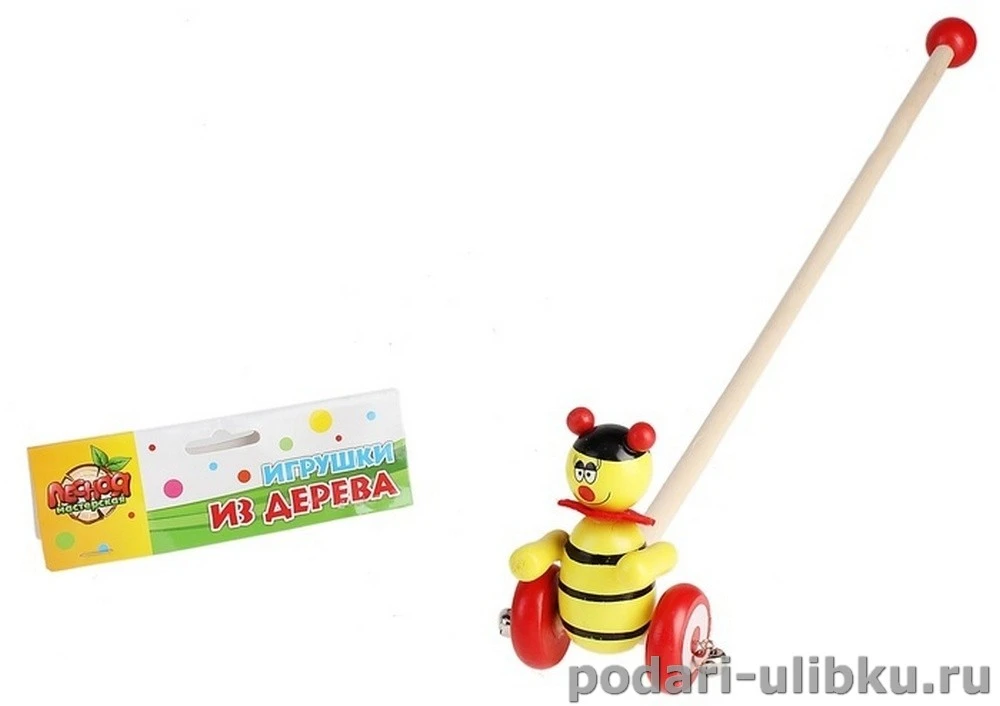 Деревянная каталка на палочке "Пчёлка" с бубенцами