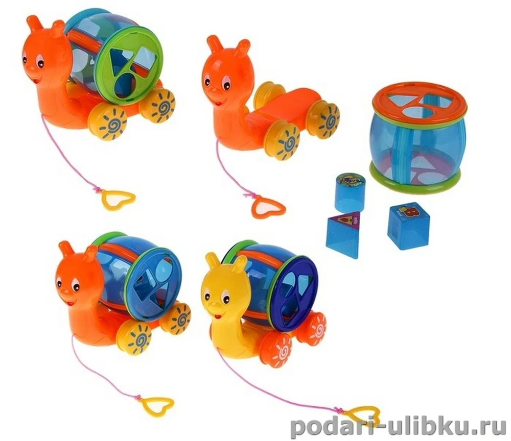 Каталка "Улитка", с логическим барабанчиком, на веревочке - многофункциональная игрушка для малыша!