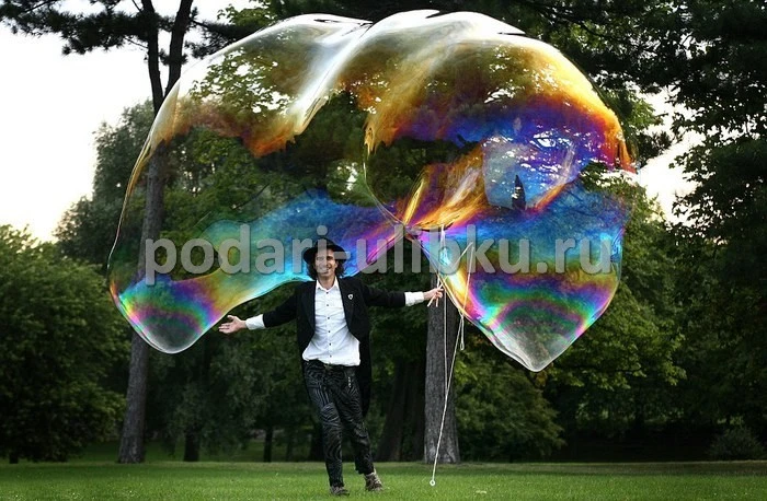 Вы когда-нибудь видели огромные мыльные пузыри, а ваш ребенок? С помощью нашего набора можно делать супер пузыри даже без специальных навыков. А если научиться надувать их правильно, то можно получить даже пузырь с человеческий рост.