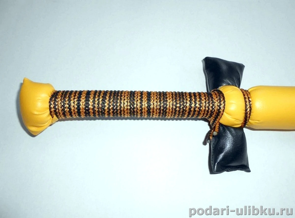 Изготовлено оружие из высококачественной резины и обшито искусственной кожей. Набивка из упругого вспененного полиэтилена.