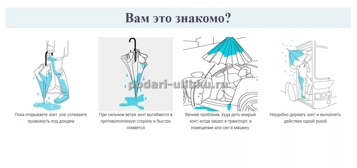 Зонт наоборот это простой и изящный выход из сложной погодной ситуации.