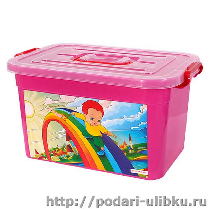 Ящик для игрушек "Радуга" малиновый 10л - удобный способ хранения детских вещей и игрушек. Крышка легко одевается на контейнер и плотно фиксируется креплениями. Также для удобства на крышке контейнера есть ручка для переноски.