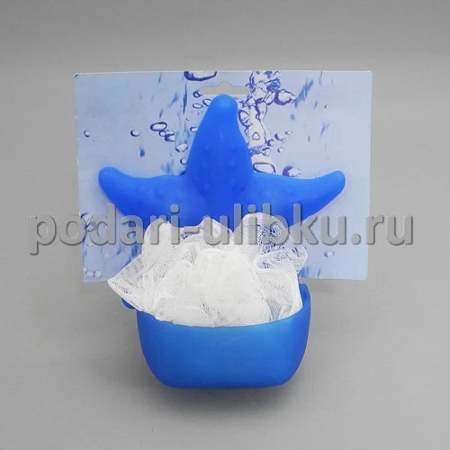 Держатель для мочалки на присосках "Морская звезда голубая" + мочалочка