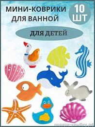 Набор мини-ковриков для ванной "Микс №6 " 10 штук + 1 коврик-липучка полочка.